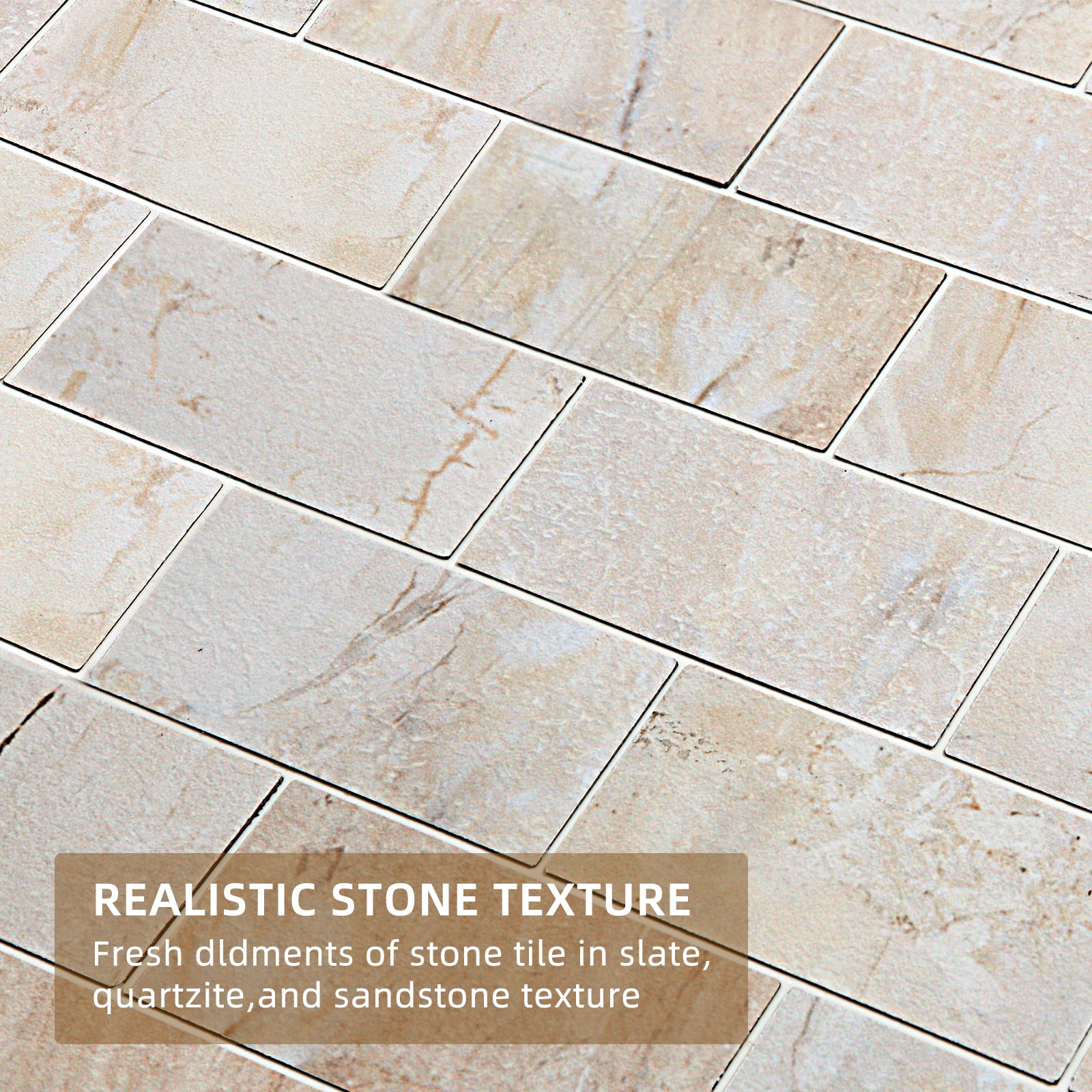 Peel and Stick Wall Tile PVC Realistic Fauxed Stone Texture Subway Tile in Beige